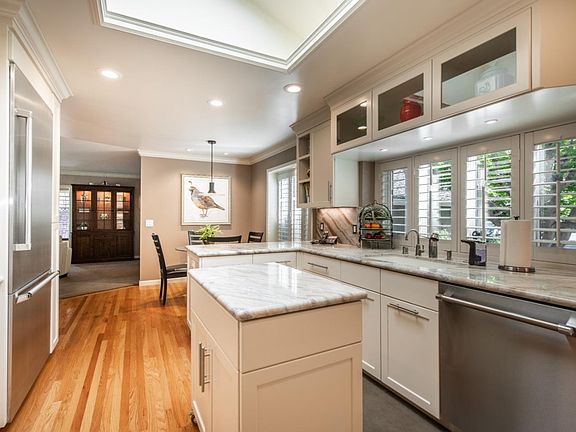 One of Los Altos' most peaceful, tree-lined streets close to Oak Elementary and Mountain View High is home to this beautifully renovated, 3 bedroom + office, 2.5 bath Ranch-style home. Beautifully landscaped front and rear yards with raised vegetable beds and a garden shed enhance this ample-sized lot. Remodeled kitchen and baths, newly refinished floors, newer interior and exterior paint, newer shingle siding exterior and a newer Presidential TL composition roof make this a move-in ready opportunity. The kitchen offers Quartzite counters, custom cabinetry, stainless Thermador appliances, gas range, and eat-in area for family meals. The entire block features rare and desirable generous lots with spacious yards and mature trees. Close to freeway access and retail centers with top Los Altos schools (Oak, Blach, Mountain View Buyer to verify).