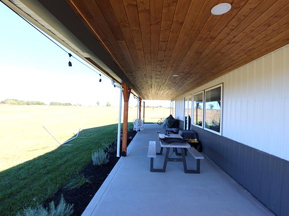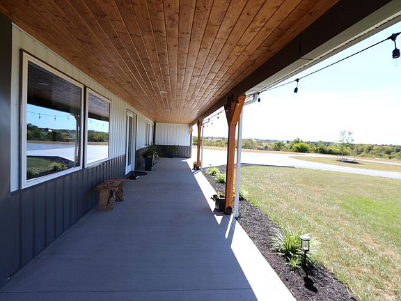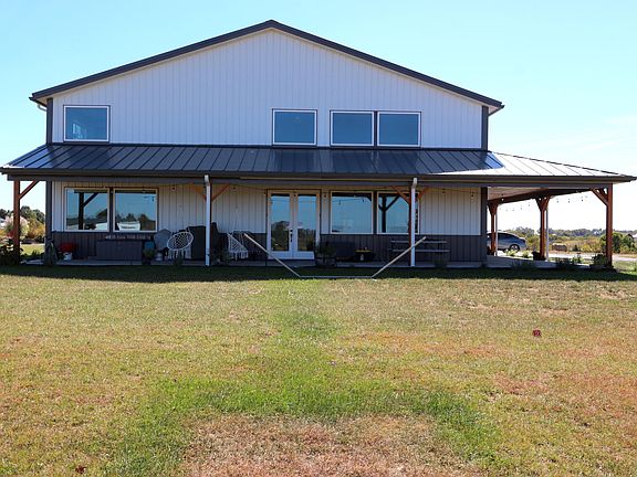 This newly constructed barndominium with L-shaped porch(1,080 sq.ft) & huge attached garage(3,600 sq.ft) is ECO friendly home (air scrubber, radon mitigation system, 14 stage water filtration system, zero VOC paint, no smoke or pets). Abundance of natural light on main level which features 18' ceiling with 8' fan, radiant heated floor; 2 master bedroom suites(walk-in closets, double vanities, walk-in shower, free standing soak tub in one & walk-in soaking jetted tub in second); kitchen-Amish custom built cabinets(self-closing), commercial cooktop(propane) with pot filler faucet, quartz countertops, walk-in pantry; oversized laundry.