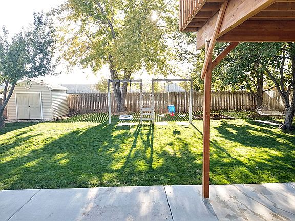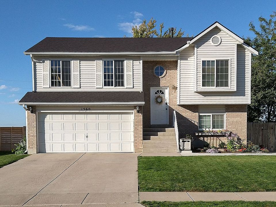 Come see this well-maintained home located in the Hess Farms neighborhood! Great location with a walking/biking trail just behind the home. Two parks and a highly rated elementary school are within walking distance. On the upper level there is a family room with a large window providing a view of the Wasatch Mountains. Down the hallway there are three bedrooms and a bathroom. The kitchen is furnished with stainless steel appliances, all of which were replaced within the last three years. The kitchen also has newly refinished hardwood flooring and cabinets. A sliding glass door off the dining area leads to a one-year-old Trex deck that overlooks the backyard. The yard is fully fenced and includes a playset, mature shade trees, a producing peach and apple tree, and a shed to keep all your tools and toys in. There is also a garden on the front, left side of the house. The primary bedroom is located on the main floor and includes a bathroom and two closets. On the main floor there is also a laundry/mudroom, a flex room, and a storage room. The water heater in this home was replaced only a few months ago. This is a home worth looking at!