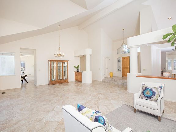 Beautiful custom single story home in Ridgemark. The step down entry leads to an open living and dining room with vaulted ceilings and lots of natural light. This expansive 1-level home is equipped with a large master retreat, and an office that could be converted to a 4th bedroom. Large stamped concrete patio looks on to the greenbelt and mountains to the east. The 4 car garage comes equipped with lots of cabinets. Other bonuses include newer central heat and A/C systems, an owned solar system on the roof, and water softener system with a recirculating hot water pump.
