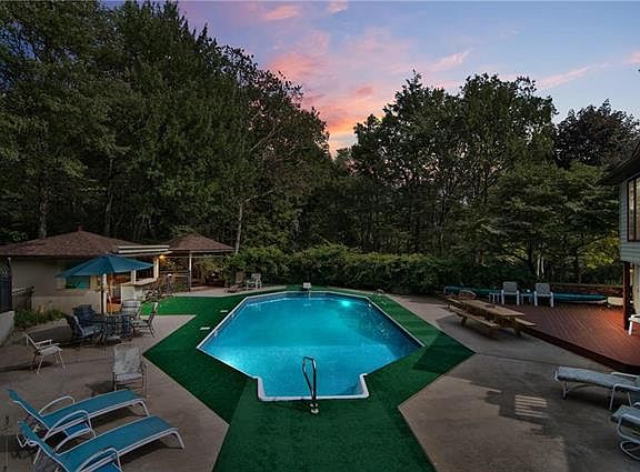 Exceptional Pocono Playhouse! This 5+Bedroom, 3 Full Bath Home is FullyLoaded! Living Room W/ Floor To Ceiling Stone Fireplace. Gourmet Kitchen W/Corian, Tile & Breakfast Nook. Formal Dining Rm W/ Tiled Fireplace! TastefulAccents Include Custom Built-In Shelving, Marble & Numerous Windows &Skylights For Natural Light! Entertain All Year Long W/ Your Heated Indoor Pool,Jacuzzi, 4 Season Room, Gym, Sauna, Game Room, Bar & Movie Theater!Indoor/Outdoor Surround Sound Speaker & Security Systems. Nearly 2.5Manicured Acres W/ Tree-Lined Privacy Fence Offers Heated 2-Story Shed,Cabaña W/ Kitchen, Gazebo, Water Fountains, Heated Outdoor Pool, 2Showers, Expansive Decking & Pool House! Brick/Stucco Exterior W/ PavedDriveway & 4 Car Garage. Close To PV Schools & Area Attractions! A MUSTSEE!