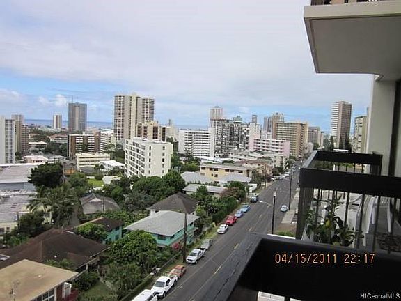 Beautiful large studio unit with 1 bath, apprx. 403 sf of living area with a 75 sf of lanai area. Upgraded unit with new vinyl laminate flooring, and interior paint. Views of Diamond Head, City and Coastline ocean view. Unit has window a/c, stack washer/dryer. Great locations, off Ward Ave, near Bus line, freeway, downtown Honolulu and Ala Moana Shopping Center. Application fee $20. Sorry no pets or Section 8.