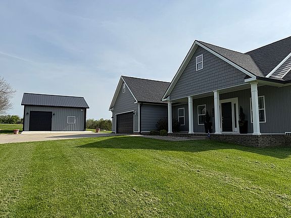 This spacious and well-maintained home offers the perfect blend of comfort, functionality, and outdoor living. With over 2,000 sq ft of living space, this home is perfect for families, remote workers, or those seeking extra space. Property Features: 3 bedrooms with a flex room/optional 4th bedroom, 2-car attached garage, 2 acres in a peaceful setting, covered front and back porches, swimming pool surrounded by composite decking and Trex railing for low-maintenance enjoyment, newly constructed 24x24 pole barn ideal for hobbies, storage, or a workshop, 3-acre spring fed pond, new roof (2023), new siding on front and left sides (2023), new 6in black gutters (2023), crawl space foundation. This property offers a mix of country living and modern upgrades with plenty of room to grow, play, and relax. Whether you're entertaining by the pool, working in the barn, or enjoying a quiet evening by the pond, you'll love calling this place home. Contact owner for additional information. Serious inquiries only. Seller will require a pre-approval letter before any offers are accepted.