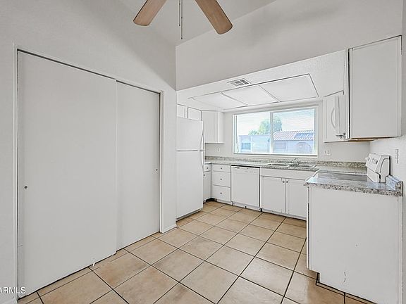Private fenced backyardAssigned covered parking spaceGranite counter topsLarge storage roomWhite appliancesWall-to-wall tile flooring