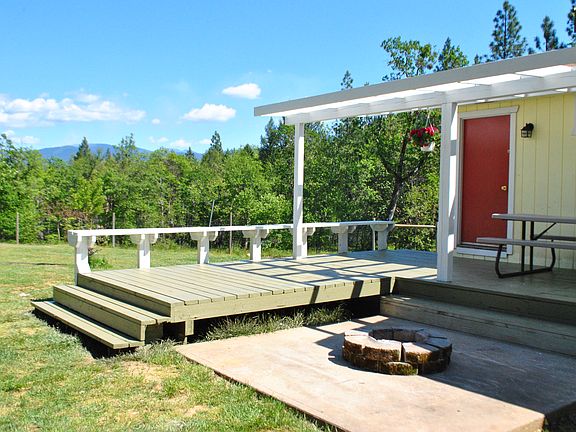 For your consideration is a gated, single family dwelling built in 1976. It is situated on ten private, rural acres and has a seasonal creek as well as a bountiful supply of wild turkeys and deer. There are two pastures available for raising livestock as this property is fenced and cross fenced. Water sources are available in both pastures. Adjacent to the 2700 square foot house are two outbuildings – possible storage shed/additional chicken coop with fenced yard. The current chicken coop is located adjacent to the pig pen. Numerous fruit trees are established in the back yard such as plum, apple, and pear, as well as several young almond trees. Domesticated blackberries yield upward of twenty gallons per season. The fenced backyard has been sectioned into a garden area and many amendments have already been added to the soil. Installed in 2014 was an in-ground sprinkler system and a Reliance 80 gallon water heater. This property is serviced by a septic tank which was pumped 9/14 and a well that produces 27 gallons/minute. This updated house has five bedrooms plus an additional bedroom/office as well as two bathrooms. Two bedrooms are on the second level while four are on the lower level. There is hardwood flooring throughout the kitchen and the kitchen cabinets were handcrafted from lumber milled from the property. Heating consists of a wood stove both in the living room as well as in the master bedroom on the lower level. The remaining bedrooms are equipped with self regulating cadet heaters which are run by individual thermostats. On this property there is no shortage firewood during winter months. During summer months, an easily accessible trail leads a short hike to a private swimming hole on the beautiful Illinois River. Additional features include a custom tree fort with sleeping loft and zip line. Several chickens could be included in the sale.