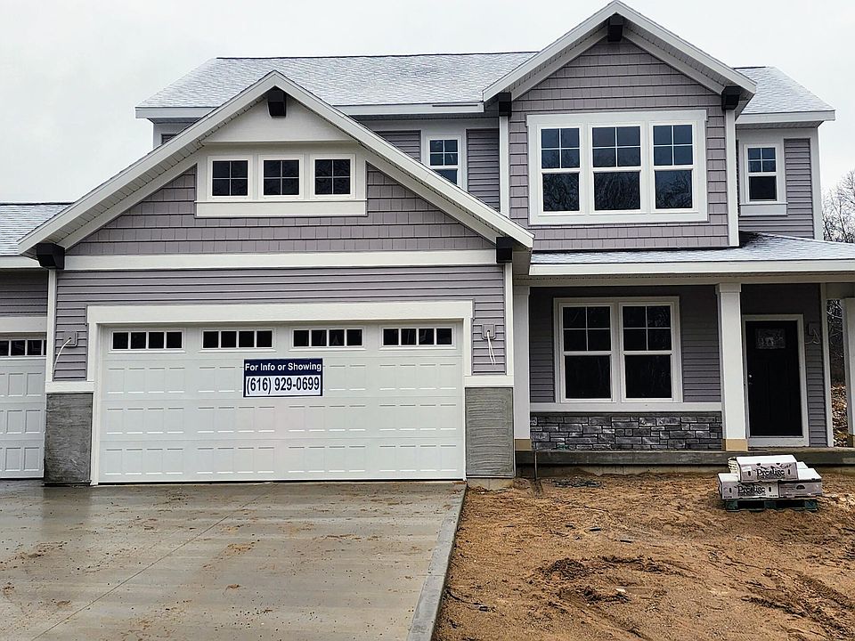 Seller incentive: $10K towards buyers choice of closing costs, prepaids, rate buydown, price reduction or combination of each on any full price offer. Interra Homes presents the ''Ashton'' plan in the popular Stony Bluff neighborhood of Lowell. Home features craftsman style with large covered front porch, Den/Office ''flex'' room, largge family room, kitchen with solid surface counters, full stainless appliance package, big center isle, large walk-in pantry, powder room off mudroom leading to 3 car garage. Upstairs are 4 bedrooms, a primary suite with dual sinks, shower and walk-in closet. Convenient laundry room upstairs as well! Daylight Basement!