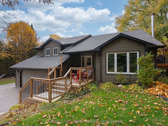 Experience country charm with modern comforts in this spacious, custom-built home on a picturesque fully treed lot, just minutes from Barrie. This 4-bedroom, 3-bathroom residence offers an open-concept layout featuring upgraded luxury vinyl plank flooring in the main living areas and hardwood in the upper level bedrooms, blending warmth and elegance throughout. The great room boasts a large picture window with views of protected greenspace and high ceilings filling the space with natural light along with a beautiful Napoleon wood stove to provide both warmth and a cozy ambiance.The gourmet upgraded kitchen is a cook's dream, complete with leathered limestone counters, a large island with full breakfast bar, stainless steel appliances and ample dining space in the adjacent dining area, perfect for family gatherings. Step outside to the raised deck from the kitchen or enjoy the master suites private cedar balcony overlooking scenic views.The fully finished walkout lower level, with a separate entrance, includes a bright in-law suiteideal for extended family, a home office, or guest accommodations. Enjoy outdoor entertaining on the expansive deck with a gazebo, or relax in the family room by the cozy gas fireplace.This quiet, private setting in the sought-after Pinehurst Estates area is a peaceful escape while still being just 7 minutes from Barrie and all amenities!