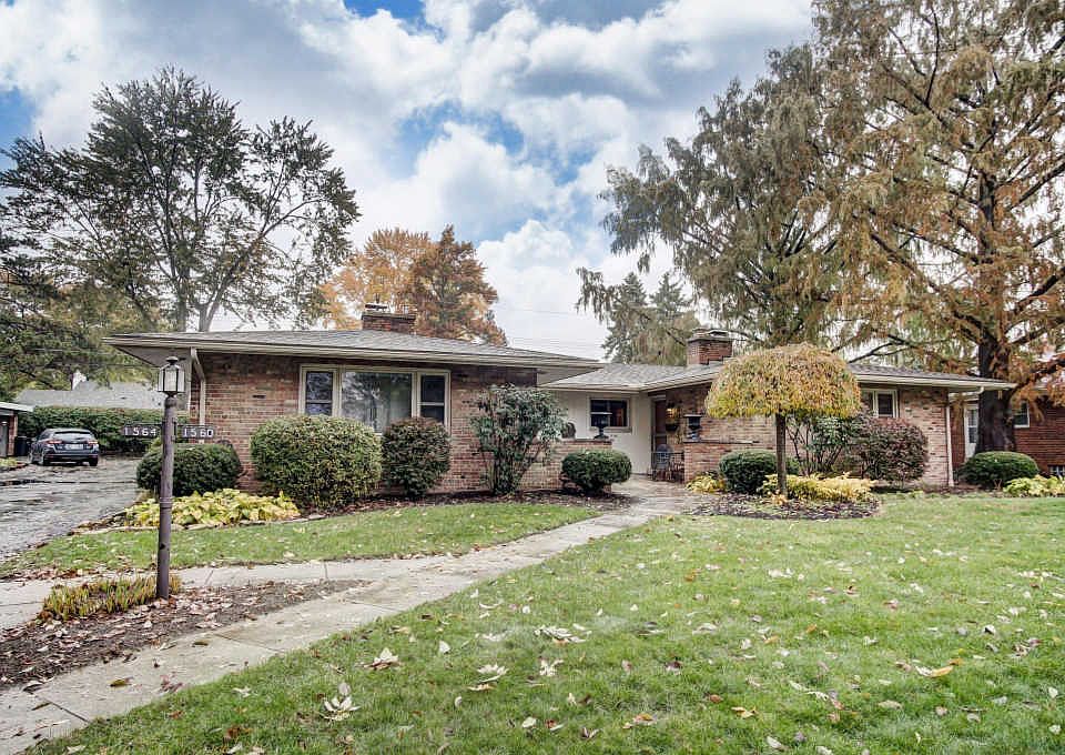 This ranch condominium has mid-century style for miles! Enter through the courtyard into the home & you will be greeted w/hardwood floors & a gas start/wood burning fireplace nestled in an exposed brick wall. The galley kitchen w/new Bosch oven is open from the living room & passes through to the family room/den. Enter into the den w/new carpet & you will find the beautifully crafted built-in bookshelves. The sliding glass door in this room leads to the private patio. Two nice sized bedrooms w/hardwood floors have ample closet space. The large full bathroom has vintage tile & built-in appointments. Venture downstairs & you will find a clean, bright basement w/half bath, storage space & easily finishable to be used as an additional family room. Near UA High School, Kingsdale and OSU!
