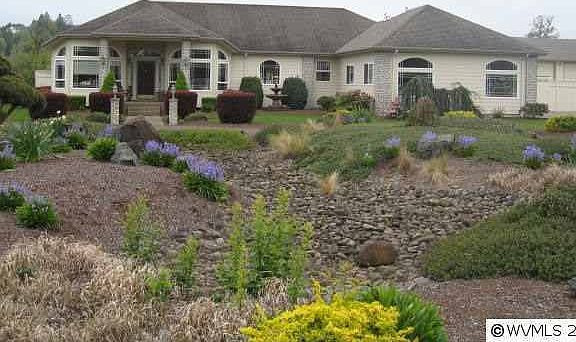 Custom 1 level, lots of windows/natural light. Den, sun room, formal + informal dining rooms, large open kitchen with frig, wall oven, cook top, 2nd cook top w/ grill/pancake griddle, walk in pantry. Real hardwood flooring, huge master suite and bath w/ dressing room/closet, xtra long jacuzzi tub + more. Master has patio, enclosed yard and large pond and waterfall. Security + sound. Large auto shop w rv size doors, 2 offices, full bath. Flat w/ mountain views. Room for arena, barn, horses. Extensive parking.