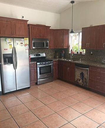 Beautiful 3 bedroom, 2 baths, 1 car garage home in Lakeside at the Hammocks. Spacious remodeled gourmet kitchen, granite countertops and gas stove, water heater and dryer. High ceilings, tiled floors, separate dining and formal living room. Freshley painted throughout. Secluded patio, great for entertaining. Separate lanai and paved driveway. Low association fees. Enjoy all the amenities the Hammocks has to offer. This one is a must see!