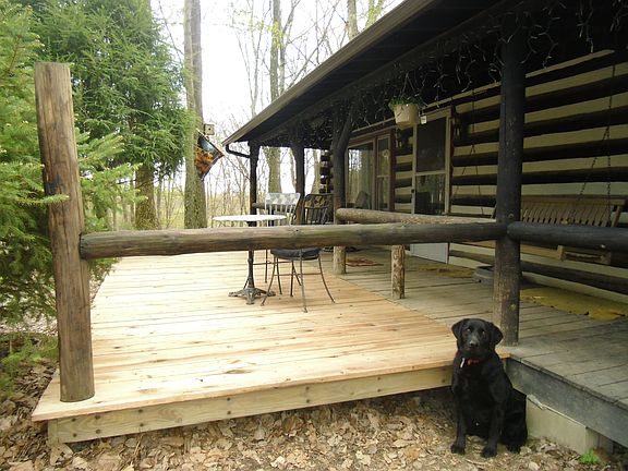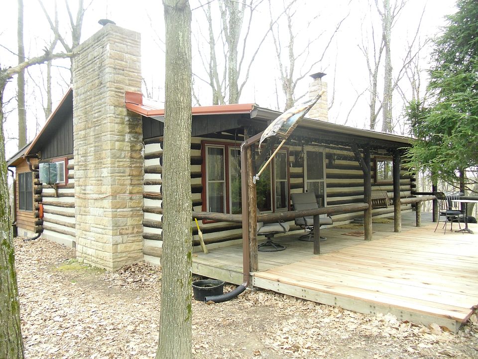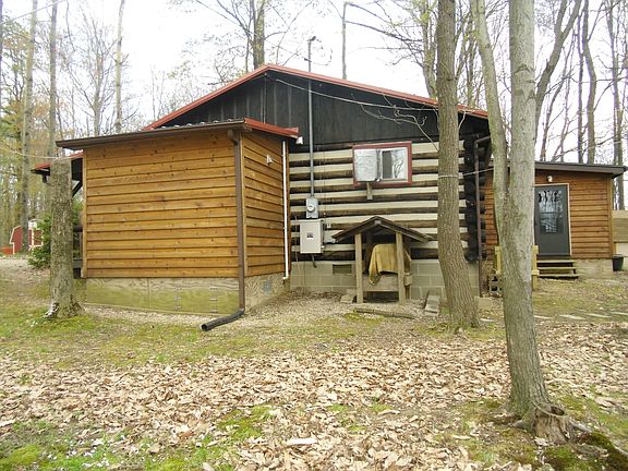 Rustic log cabin, well-maintained, on nearly 19 acres of heavily wooded land with small orchard, plenty of privacy, beautiful surroundings and ideal for hunting and hiking. Open floor plan with 3 bedrooms, small loft, one full bath and one half bath/laundry room, dining room, living room/family room area. Hardwood and laminated floors and tongue & groove walls and vaulted ceiling. New roof/gutters and new deck in 2014, and new room additions in 2009 and 2006, including remodeling of full bathroom, new well pump, and other numerous improvements and/or upgrades. Appliances include side-by-side refrigerator, range/oven and 2 window air-conditioners. Wood stove fireplace insert with plenty of cut seasoned firewood. Three enclosed outbuildings, including one with insulation and electric, which can be used as a guest house or play house for the kids, and 2 additional open outbuildings. Fenced-in 3/4 acre area with lean-to and shelter for livestock. Backup generator, security lighting, and more. Ideal permanent home for seclusion to get away from city life or can be used as a weekend/vacation home.