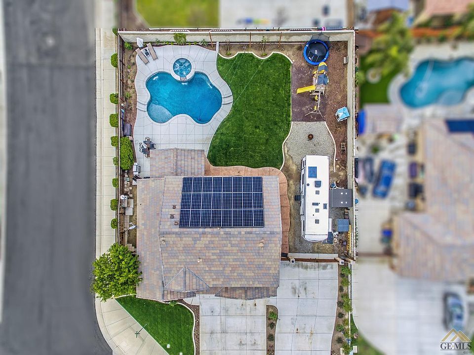 Welcome to your dream home in the highly desirable neighborhood! This stunning 5-bed, 3-bath home boasts a plethora of features that make it the perfect place to call home. The home is equipped with owned solar and RV parking, providing a cost-effective energy solution and plenty of space for your recreational vehicles. The newer paint and finishes throughout the home create a modern and chic atmosphere that is sure to impress. The gourmet kitchen features granite countertops, pantry, and stainless steel appliances, making it an ideal space for cooking. Upstairs, the master suite offers a walk-in closet, dual vanities, and a separate soaking tub - perfect for relaxation after a long day. The backyard is an entertainer's paradise, with a large saltwater pool, spa, and a covered patio for hosting barbecues and gatherings. The spacious grassy area provides ample room for outdoor activities and relaxation. Don't miss out on the opportunity to make this dream home your own!
