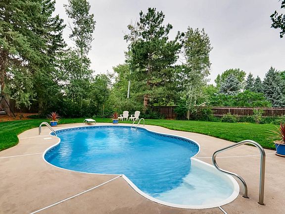 Privacy, privacy, privacy! If you have been searching for a gorgeous site and neighborhood, this is it! This home sits on nearly half an acre in a gated community and has its own private swimming pool in the fenced, flat backyard. Scroll through the pictures to see the amazing site! This home boasts 4 beds up plus 2 full baths up, formal living and dining rooms, a family room with wet bar and fireplace and a good sized kitchen with center island and eating nook. The home has tons of windows to allow the natural light into the home! In addition to this, the basement has been finished and offers a 2nd family room, a 5th bedroom and an additional bath! Brand new, hail resistant roof! Save $$ in homeowner's insurance! The crown jewel is the drop, dead gorgeous backyard! From the cov'd patio, to the fenced garden, to the pool and pool deck, you will fall in love with this one! This is why we choose to live in Colorado! Attic fan means you seldom have to run (& pay for) central AC!