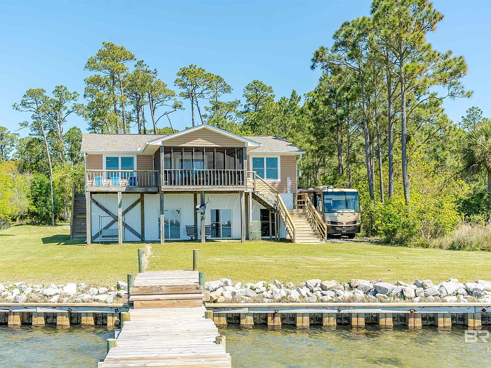 Welcome to your coastal oasis! Nestled on Little Lagoon and just moments away from the pristine white sands of Gulf Shores beaches. Sitting on 1.15 acres, this charming 3 bedroom 2 bath home with 104ft of water frontage, offers the perfect blend of relaxation and convenience. Wake up to stunning water views and gentle sea breezes! This idyllic location will allow you to spend your days lounging on the nearby beaches or exploring the vibrant local shops and restaurants. Inside, you'll find a spacious and inviting interior, complete with coastal furniture and decor that conveys with this home. Sellers have given this home a major renovation which includes a Roof, AC, Driveway, 3 Car Garage (2021) Windows & Doors, Pier w/power, Jet Ski & Kayak Dock (2022), Pipes (2023) & 6,000lb Boat lift (2024). Enjoy shallower water near the seawall that is perfect for entertaining the little ones! Whether you're seeking a peaceful retreat or a SHORT-TERM RENTAL INVESTMENT, this Gulf Shores gem is sure to exceed your expectations.