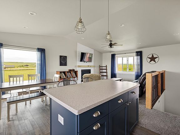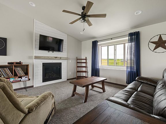 Listed by Holly Glatt, 605-641-4425, Keller Williams Realty. Check out this 2021 Kaski built home located on 5.44 acres in the beautiful, peaceful Sunset Ranch subdivision - just 30 mins to Rapid City, 8 mins to I-90 and 10 minutes to EAFB! This custom built home offers a modern, open living space with shiplap gas fireplace, rustic metal railing, LVT flooring, vaulted ceilings, and plenty of natural light! Kitchen with solid surface countertops, gas range, stainless steel appliances, pantry and breakfast bar. Master bedroom with walk in closet, attached bathroom has tiled surround. Basement is partially finished with a huge family room, bedroom and full bathroom. Remaining basement can be finished to suit your needs - egress window for bedroom option. The attached 2- car garage is oversized. This 5+ acre lot is flat with so many opportunities and common area in back from creek, no back neighbors! Chickens allowed! Bring your horses, cattle, llamas, or donkeys (1 head per 2 acres!). Buyer & buyers agent to verify MLS info and measurements