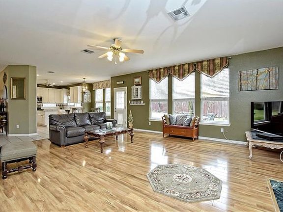 Living is easy in this spacious 4-bed 2 1/2-bath residence. Enjoy gatherings in the bright kitchen that is open to the dining and living room combination that is graced by a fireplace. Features include crown molding, stainless steel appliances, granite counter tops to name a few. All bedrooms are located upstairs with laundry. The master bedroom has its own bath with double vanity, garden tub and dual walk-in closets. This home is located on a cul-de-sac lot located in the RRISD School District.