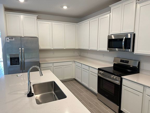 White Cabs with white Quartz kitchen counter tops, 42'' cabinets, FrigidaireA stainless steel appliances (range, dishwasher, microwave, and refrigerator),washer & dryer.