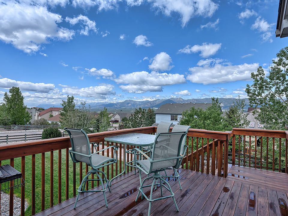 Gorgeous rancher in immaculate condition with spectacular Pikes Peak views and professionally landscaped fenced yard Features include spacious kitchen with vaulted ceiling generous cabinet space tile counters back splash pantry dining area large great room wbrick fireplace that walks out to view deck main level master w5 pc bath 2nd bedrmoffice on main lower level includes spacious family room wet bar oversized bedroom 34 bath with a walk out basement patio New roof being installed A must see