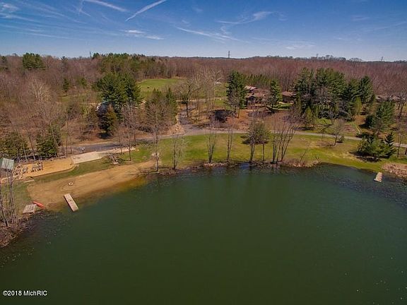 Secluded lakefront retreat offers 32 acres of pure privacy minutes from Harbor Country!Impressive gated entrance and beautifully manicured grounds lead into the property past the lake to the stately home nestled on the hillside.Perfect for full time, 2nd home or as an event space!Screened porches off each bedroom, spacious deck, sunroom and 2 story great room with floor to ceiling windows take advantage of gorgeous lake views.Includes 2 60'x40' outbuildings with heat electric and water.Each offers it's own 1 bed/1 bath apartment.Barn with stall and 5 acres fenced pasture is surrounded by fruit trees, woods and trails. Entertain at the pavilion which includes a 60'x50' stone patio, tent, picnic tables and just steps from your own sandy beach and private dock. Schedule your appointment today
