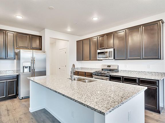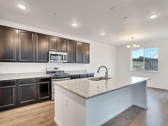 Lot 38: A brand new Kaden Plan located in Jackson Creek features: Open floor plan with mountain views- Corner Unit with great natural light. Fireplace. 42" Espresso cabinets with large island & pendant light pre-wire. 5 burner stove top, microwave, dishwasher and fridge! Upgraded Wrought Iron Balusters with stained handrail. Dual under mount sinks in 2nd bathroom. Awesome floor-plan. In nationally recognized School district 38, close to parks and trails. Just minutes to I-25, easy access to Denver and Colorado Springs. This home is available NOW! *Price reflects builder incentive for using Colten Mortgage.* This home is available NOW!