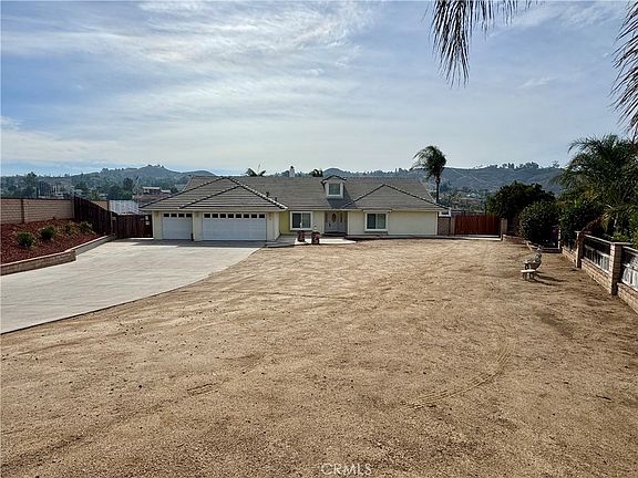 Tucked away at the end of a cul-de-sac, this stunning single-story home sits on a 4.2-acre lot offering expansive hillside and sunset views. The property features a large front yard and extended driveway, with the home thoughtfully set back for added privacy. Through the gated RV entrance, you’ll find an additional area with abundant parking for boats, trailers, and toys—plus property has three-car garage attached and RV access on both sides of the home. Inside, the remodeled kitchen boasts new quartz countertops, and a breakfast bar. The family and living rooms share a dual-sided fireplace and a convenient wet bar, creating a warm and inviting atmosphere ideal for gatherings and entertaining.