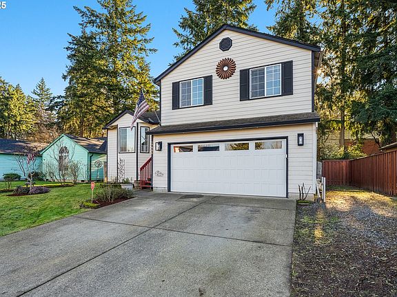 This inviting Sherwood home in a sought-after neighborhood offers a functional layout, thoughtful updates, and great everyday living and entertaining spaces. The vaulted living room features a gas fireplace and a bay window that fills the space with natural light while providing a view of the front yard. The adjacent dining area includes a slider to the back deck, making it easy to enjoy meals inside or out. The kitchen, overlooking the backyard, offers plenty of cabinets and new appliances, creating a practical space for cooking and meal prep. The open flow from the dining and living areas to the multi-level deck is perfect for hosting gatherings or enjoying quiet evenings. On the upper level, the primary bedroom suite includes crown molding and an updated bathroom with a new vanity and tub/shower combination. The two additional bedrooms and a hall bathroom with modern updates provide plenty of space for family or guests. The lower level features a cozy family room with access to the lower deck and garage, along with a flex space that could serve as a 4th bedroom, office, or hobby room. Recent updates throughout the home include new carpet, new light fixtures, freshly painted trim, and updated interior doors. A new furnace and air conditioning system (installed in the last three years) and a new water heater (2020) add peace of mind. Outside, the fully fenced backyard offers space to play, a tool shed, and a multi-level deck for outdoor enjoyment. The two-car garage includes storage cabinets and a recently replaced garage door. Conveniently located across the street from Langers Entertainment Center, this home is in a prime central location convenient to Hawks View Elementary, fields, parks, shopping, restaurants, and more! Come see the potential in this Sherwood gem for yourself!