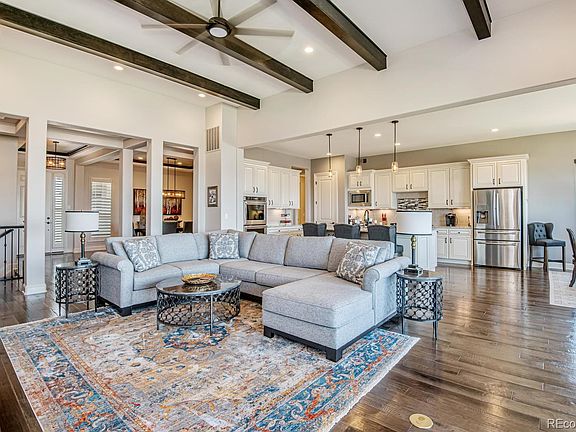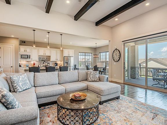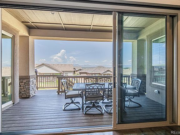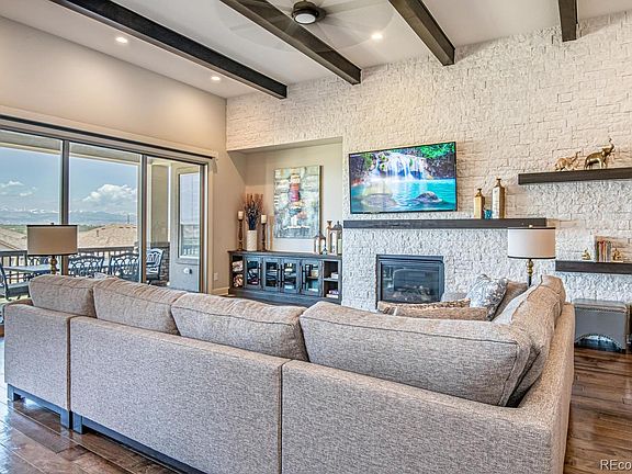 Rare Antero Model w/Gorgeous Mountain Views & a plethora of upgrades.Toll Brothers newer 2018 home w/walkout unfin full basement.Elegantly upgraded w/ extended hardwood floors, beautiful lighting&pendants,large extended kitchen island w/ finished sides and extra cabinets under the island. Gourmet kitchen has Kitchenaid Appls,rollout drawers,undercab lights,pot filler, handles on cabinets, french country cabinets &exquisite backsplash.Wood beams in the ceilings, upgraded ceiling fans, Colorado Doors that slide open to a large covered deck with expansive mountain views. Solar screens&upgraded window coverings.Wine refrigerator, dining room buffet w/glass cabinets.Plantation shutters,upgraded carpeting,pad&bathroom mirrors, large laundry room with washer/dryer and utility sink. Security system& torm door are included. European Frameless Master Shower, 5 piece master bath with beautiful designer tile accents &Closet organizers.Backs to greenbelt w/tons of privacy&views from many rooms!