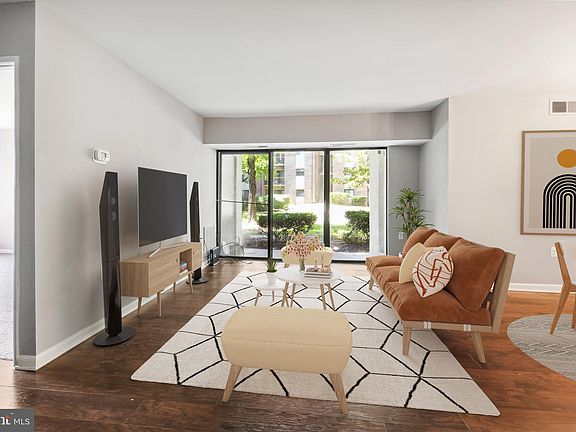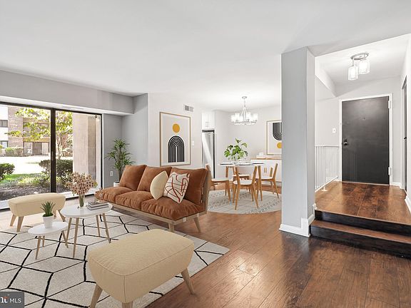 Beautifully renovated 1-bed, 1-bath ground level unit situated in Brookmill Condo just minutes to Laurel MARC station. Gleaming hardwood floors and updated light fixtures throughout welcome you to this light filled home. The chef’s kitchen is the centerpiece of this home boasting dual tone shaker cabinets, trendy subway backsplash, quartz countertops and stainless steel appliances. Whether it's entertaining or unwinding, the expansive living and dining area offer the perfect backdrop. Step out the slider door to the outdoor patio, where you can savor your morning coffee while basking in the serene courtyard views. Large bedroom offers ample natural lighting and a spacious walk-in closet complete with built in organization system while an updated hallway bath features contemporary floating vanity and tiled tub/shower combo. Abundant closet space throughout the unit simplifies organization, while the in-unit washer and dryer add a layer of convenience. Two parking permits and a visitor pass are included. Enjoy peace of mind with recently serviced A/C and updated electrical panel. Community amenities include outdoor pool, several shaded walking trails for nature enthusiasts and unit backs to Roland Sweitzer community park with tot lot and picnic tables. Just a short drive to Laurel MARC commuter station, and strategically located between Baltimore and DC, great for weekend exploration with easy access to I-495 and I-95. Don’t miss this rare find.