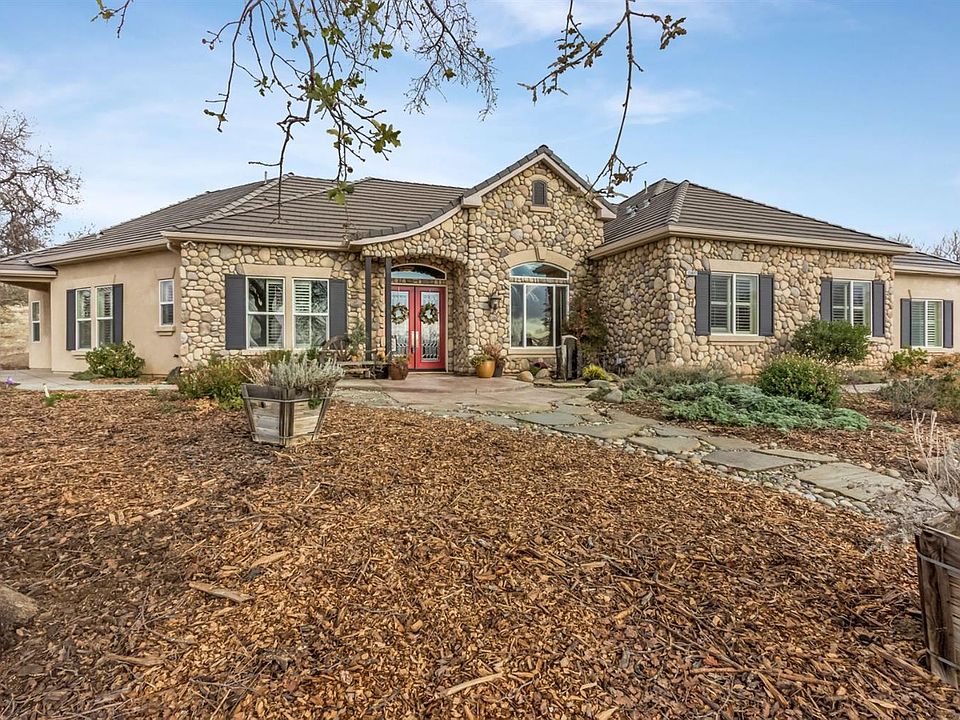 JAW DROPPING beauty inside & out describes this gorgeous Custom home on almost 5 fenced & cross fenced acres. In addition to the 4 bedrooms, there is a huge OFFICE w/a walk-in closet that includes built-in desks & cabinets & has a door to it's own patio entrance. The 4th bedroom has a private bath. There's a large bonus room, formal DR, huge LR & large stunning kitchen. High ceilings, crown moulding, recessed lighting, surround sound speakers are just a few of the extra features throughout this home. The MB suite is huge, complete w/his & hers walk-in closets, a gas FP, door to patio & a spa tub. Attached is a huge cov'd patio &oversized 3 car garage. There's a large finished shop w/220, horseshoe pit, fenced pastures, fenced small animal area currently housing dogs. Views add to this awesome estate. There's a solar gated entry & concrete circular driveway. Schedule a tour today as pictures can't do it justice.