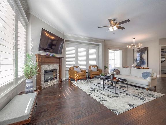 Picture perfect villa in coveted Asbury Villas. High end designer finishes in this 3 bedroom 3 bath home situated on a private lot near the walking trail. One of the largest floorplans in the neighborhood! Step into this beautifully designed home with hardwoods throughout the living areas on the first floor. Open layout features living room with fireplace, dining area and kitchen. The primary suite is spacious and includes ensuite bathroom with large shower, double vanity and linen closet. Primary bath connects to the walk in closet and the laundry room. The office/ second bedroom has access to a full bath as well. Dining area walks out to private patio. High end finishes include wood floors, tiled baths and laundry, plantation shutters & custom shades, new ceiling fans and light fixtures, illuminated wall plugs, and much more! The garage is immaculate with epoxied floors. The lower level is finished with a large recreation room with full bar, 3rd bedroom, full bath, bonus room and ample storage. Kitchen refrigerator and washer/dryer stay with the property. This one will not last long!