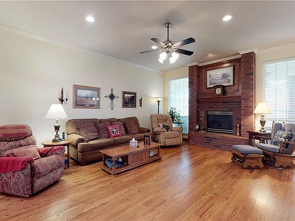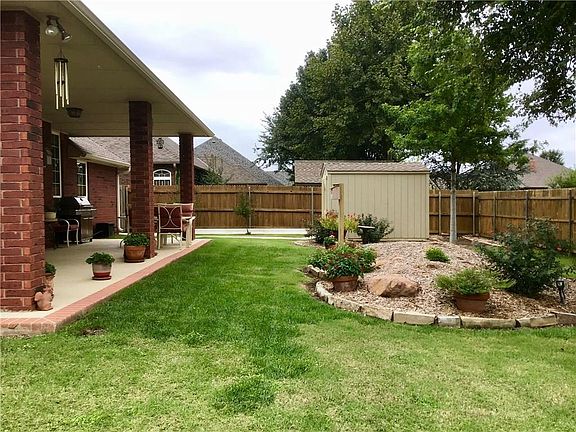 Beautiful well cared for home with lots of upgrades. Updates within the last 2 years include: new paint throughout, new ADA toilets and hand rails, new faucets in the kitchen and hall bath, new fence, new storage building, and lots of new concrete in the backyard and the side of the home. Nicely landscaped front and backyard, including a water feature. Large patio with a concrete walk to the shed. Garage features a storm shelter in the floor, a workshop area with a work bench, and room for 2 fridges. Wood floors in the living, dining, kitchen, and middle bedroom. Living has a fireplace and is open to the formal dining and kitchen. Kitchen has an eating space, a breakfast bar, a pantry with swing out shelves, and 2 lazy susans. The master has double sinks, a separate vanity area, a step in shower with updated tile, a jetted tub, and a walk in closet with built in shelves. The laundry room has cabinets, a sink, and a half bath.