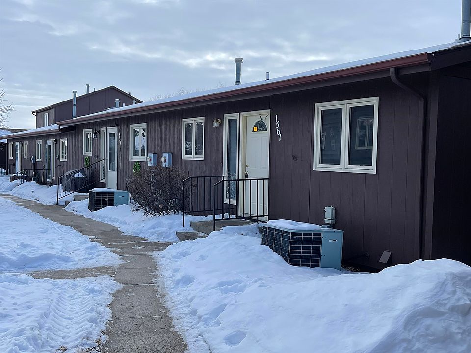 Leave your snowblower and lawnmower behind while you enjoy Condo living! This property has 3 bedrooms, 2.5 baths and a double garage. The primary bedroom has an ensuite half bath. With recently updated flooring and paint. Lots of storage!  The main floor living room area has a sliding door with a deck that looks out to a coulee.   The lower level features a 3rd bedroom, 3/4 bathroom, entertainment room with a wood fireplace and a walkout patio. Lower level also has a utility room and another storage room that could easily become an office or hobby/craft area.   Association fee is $155 a month that covers snow, lawn, water and garbage.