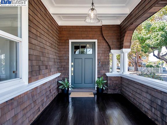 Built in 1903, this stately Brown Shingle Craftsman is located just 3 blocks from the shopping and amenities on downtown Webster St, and less than a mile to Washington Park and Crown Memorial State Beach. One of the few homes chosen for the 2020 Alameda Legacy Home Tour, this spacious two-story home features 4 bedrooms,1.5 bathrooms, a grand entrance hall, formal living and dining rooms, an open kitchen + family room, an enclosed sun porch/laundry room and a 1-car garage. Many original features include hardwood floors, a built-in dining room hutch/sideboard, 9-ft box beam and coved ceilings, bay windows, picture rails and wainscot paneling throughout. The kitchen and main bathroom have been attractively updated with timeless colors and finishes. Spacious rooms throughout with plenty of natural light. Mature, fruit-bearing lemon, orange and persimmon trees! Off-street parking + Tesla EV charger. Great West End location just minutes to parks and schools + easy access to both Alameda Landing and South Shore Center shopping, and the SF Ferry to Oakland and San Francisco. This home is vintage Alameda at its best!