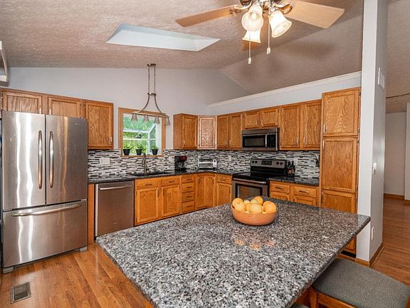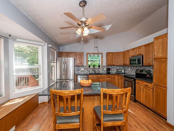 Great home in a quiet cul-de-sac. Kit has beautiful granite counter tops, island, SS appliances, electric opening skylight in the vaulted ceiling. Living room has a wood-burning FP. Primary bedroom has walk-in closet and attached bath w/updated walk-in shower. Tank-less water heater helps keep your bills low! Study or flex room in LL and plenty of storage. Enjoy the peaceful back yard on the lg deck and use the firepit. Storage shed helps keep your garage tidy! Washer/Dryer. Home Warranty.