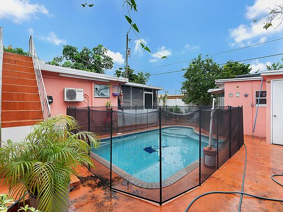 Nice opportunity to own a 100% concrete constructed home, with great potential to build a second story. Never pay to replace your roof!!! Includes a 1/1 with separate entrance currently part of home; can easily be converted to produce additional income! Nice covered terrace with an outside kitchen overlooking fruit trees, pool and shed.. call today before it's gone!!
