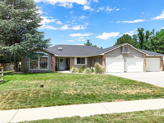 Immaculate home in the heart of the Treasure Valley. Rare gem sitting on almost an acre. Bring all of your toys! Three car garage along with a 30x50 shop, and a large RV parking area. Property has an apple, apricot, pie cherry, three cherry trees, and a covered patio overlooking a pond. This home has vaulted ceilings, lots of counter space, dual vanity in the master bathroom, two wood pellet fireplaces, and a huge living area. Restaurants, schools, and entertainment all within walking distance. Whether it's for convenience, hosting family and friends, or having extra space for a business, this is the house for you!