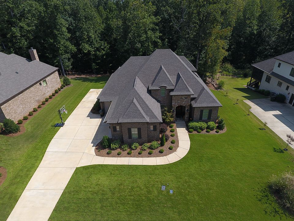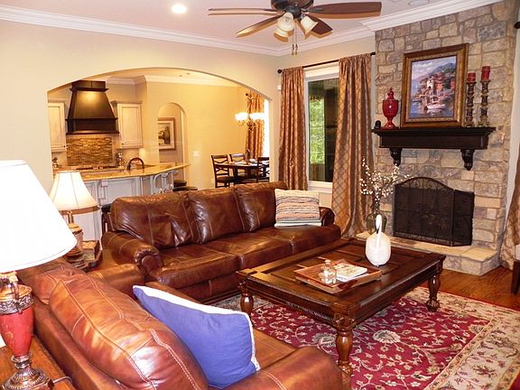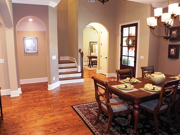 Gorgeous home with hardwood flooring throughout the living areas & kitchen. Great family room space with vaulted ceiling, custom built-in cabinetry, gas log stone fireplace & opens to covered flagstone porch with wood burning fireplace, surround sound and stained board ceiling. Open kitchen offers granite counter tops/bar, pantry & Kenmore stainless appliances and stunning custom cabinets. Master suite has hardwood floors, wide bay window, access to porch. The master bathroom has soaking tub, large tiled shower and massive walk-in closet. A 2nd main level bedroom could also function as an office. Arched doorways on the main floor and so much attention to detail! Upstairs features a loft area with hardwood, 3 bedrooms, and a laundry chute. Extras include: Entire downstairs is hardwood or tile except for guest bedroom, spray foam insulation, LED lights throughout, Pella windows, Plantation shutters on most windows, 2 hot water heaters (one tankless), conservation easement behind lot.