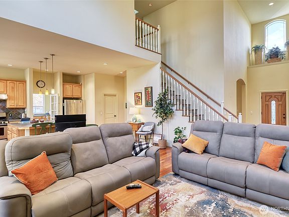 One of the most exceptional homes in Point Roberts! Custom designed and build to the highest standards with the best of everything. Quiet cul de sac & the large sunny rear lot backs onto 229 ft of canal/lake frontage. Very private. Main floor with 20+ high ceilings with 10 ft on the balance. Massive windows everywhere fill the home with sunshine. 3 beautiful propane fireplaces, 2nd kitchen, cozy den. Open floor plan with large kitchen, island & family room. Solid hardwood floors, skylights, huge rooms, & the main floor primary bedroom is truly a retreat. An easy walk to the marina+private beach access and beach rights. Offered WAY under replacement but shows like a new home! Large patios & decks, fruit trees & large sunny garden area!
