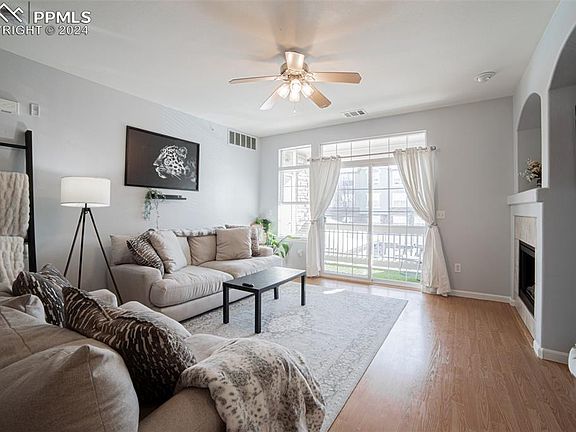 Welcome Home to your very well maintained spacious Condo with almost 1500 sq ft of living space! With lots of natural light, the open concept living space will make you feel right at home or hang out on the patio with your favorite beverage after a long day. The extremely spacious primary suite has a large walk-in closet as well as double sink vanity attached bathroom. The unit has a large laundry room & is an excellent perk that will make your life easier AND the washer and dryer stays with the home! The kitchen boasts recently resurfaced countertops and a breakfast bar area for at least 3 stools which provides easy functionality but also opens to the living area for entertaining. This unit does allow for you to get on the list for a detached garage if you desire-that is rare for condo living! Enjoy this fantastic location that is close to shopping, restaurants, parks, golfing, and very easy access to I-25....this could be your sanctuary! *****New Water Heater and Dishwasher*****