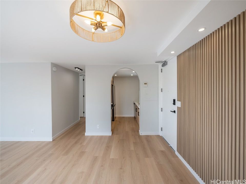 The entrance to this 2BD/2BA condo showcases a bespoke interior wall panel that adds distinctive texture, and is perfectly designed for your contemporary condo lifestyle. Extensively remodeled in 2024, be the first to occupy this corner unit which offers an abundance of natural light and a peekaboo ocean view. The key design showcases custom cabinets & closet systems, recessed lighting throughout, adjustable directional ceiling downlights in the corridor, illuminated bathroom mirrors, and a stacking washer & dryer with built-in cabinetry. Also brand new are these features: flooring, appliances, countertops, sinks, toilets, shower, tub, fixtures & hardware, mirrored closet sliders, and interior doors. Included is one assigned covered parking in a standalone space, with building amenities such as a swimming pool, whirlpool, recreation room, resident manager, and guest parking. Nearby shopping, dining & entertainment, plus convenient freeway access - don’t miss this rarely available unit in an ideal Honolulu location. All the work has been completed and this home is ready for your move-in!