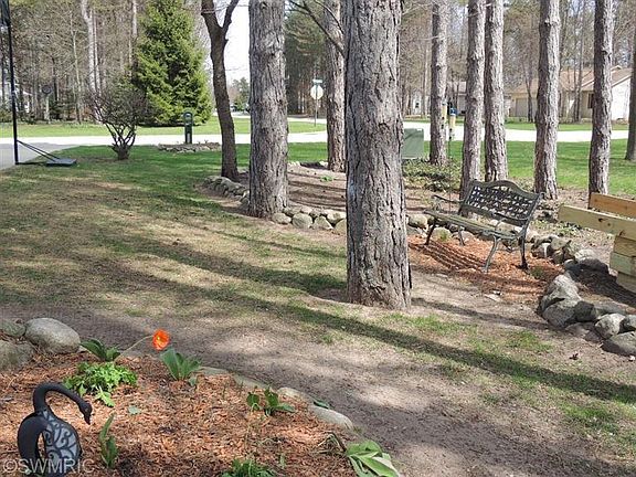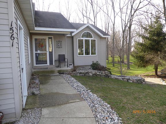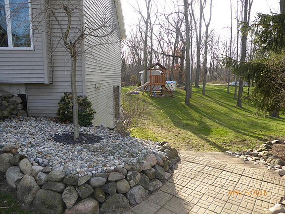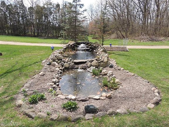Beautifully landscaped home which features rock lined walkways and landscape gardens as well as a large patio with sunken firepit, a small pond in the front and a large pond suitable for fish with a gorgeous rock waterfall in the backyard. The back yard also features an 8x12 storage building with a kennel on the side. Inside is a well maintained 3 bedroom 2 bath home with newer stainless appliances in the kitchen which remain, a family room with sliders to the patio on the lower level and a larg e rec room with wetbar featuring sink and undercounter fridge in the walkout basement. Underground fencing is around the entire yard. Seller will take the collars and transmitter in the garage but all fencing remains for an easy installation for the new owner. Beautiful colors, spacious rooms and tasteful decorating throughout this home which is located in the Thornapple Kellogg school district with easy access to M37 for your commute to school, work, shopping and more. Call Pat @ #269-838-146