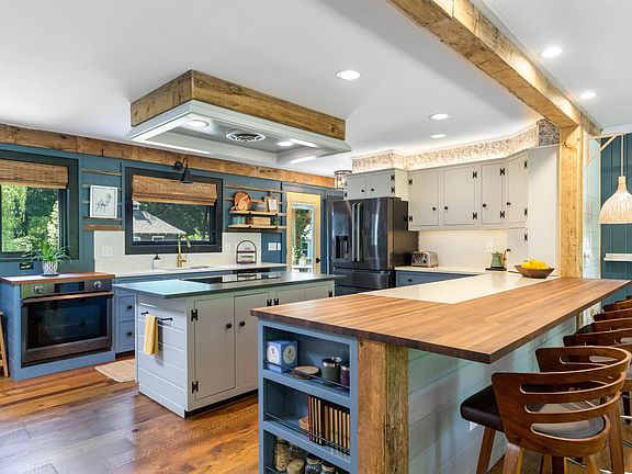 Fully renovated with meticulous attention to detail, don’t miss this unique Colchester home with access to Lake Champlain! An open & inviting kitchen, dining & living area welcomes you in with large windows that fill the space with light & a cozy wood stove. The kitchen includes a custom walnut peninsula with seating for 4, quartz countertops, custom vent hood over the center island & wood beams complimenting the stunning details throughout. A cozy sunroom leads you into the primary suite where you’ll find a spa-like full bath with soaking tub, tiled shower with glass door & cedar ceiling and nearby walk-in closet with custom built-ins. The living room has a modern wood stove, built-in bookshelves & a slider to your covered back deck. Also off of the living room is an office, breakfast bar, laundry & half bath. This home has a second primary suite with its own entrance, ¾ bath & plenty of living space making it a great rental space. The large double garage with epoxy flooring makes a great workshop, while the additional garage has been converted into a gym. The back of this home is a private oasis with perennial gardens, raise beds & tons of space to use as you please! Enjoy the above ground pool & pool house, 2 large decks & the unique historical cabin! There’s also a tool shed & chicken coop with chickens included! This home has shared beach access to Lake Champlain, is close to the bike path & causeway, shops & dining & 15 mins to Burlington! Delayed showings begin 6/8/24
