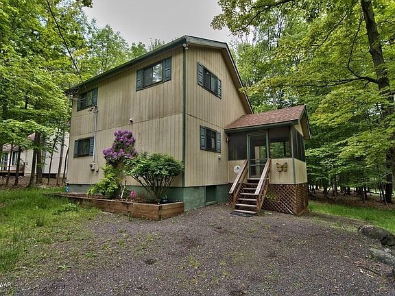 Great location within walking distance to the North Beach in an amenity filled community in The Northern Poconos, just over two hours from the NYC and Philadelphia Areas. This 3 bedroom, 2 bath home has an open floor plan, high ceilings and brick fireplace in the main living area. There's also pine tongue and groove ceilings on the main level. Two bedrooms and a ''Jack and Jill: bathroom on the second level. The outdoor space includes a wooded backyard, rear deck and screened in porch.