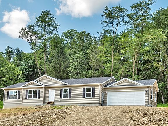 NEW CONSTRUCTION! Set way far back from the road on a private and picturesque 5.083 acre lot. Desirable open concept floor plan! Large living room flows to the gourmet kitchen w over-sized center island breakfast bar offering tons of seating, coffered ceiling, wood cabinetry, stainless steel appliances and huge pantry. Sliding glass doors off the dining area to paver patio. Spacious master bedroom has a walk-in closet and lavish master bath w two sinks in vanity, storage cabinets, large stall rain shower w decorative glass tile. Additional bedrooms have ample closet space. Convenient 1st floor laundry. Finished basement w 9 ft ceilings greatly increases your living and entertaining space. Attached garage. Open, wooded property across from the river backs to Open Space. Close to shopping and dining. Great commute.