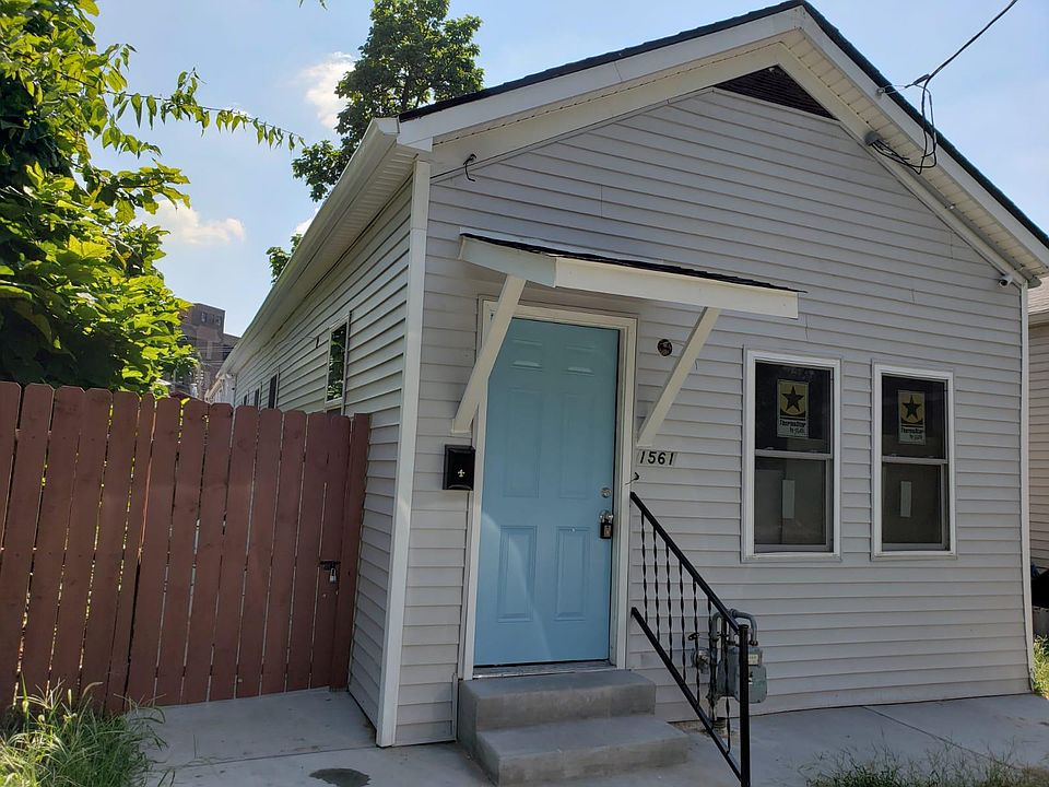 House was totally renovated in 2021. refrigerator has an ice maker. washer drier hook ups next to refrigerator. there are lots of cabinet space in kitchen. house has tall ceilings and fans in each bedroom and living room. all electrical is LED. water heater is gas, furnace is gas too. all walls freshly painted. there is a concrete patio out back for grill and/or sun bathing. security doors and windows - all new! electrical and plumbing - everything new from 2021! tenant pays for water and LGE. cats allowed. no smoking allowed