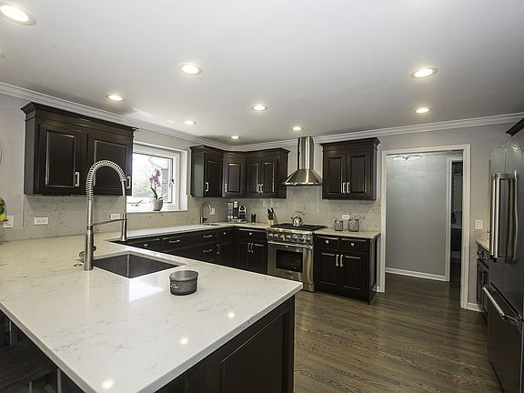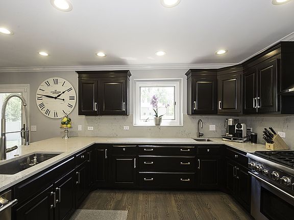 Welcome to this fabulous, light-filled two-story gem nestled in a prime location, boasting 4 bedrooms and 3.1 bathrooms. Large open floor plan. This home also includes hardwood floors throughout the main level with the warm atmosphere of the living and dining rooms, underscored by a cozy fireplace. Step into the custom remodeled kitchen, where culinary dreams come to life. The elegant quartz countertops and backsplash shine alongside the top-tier Thermador oven and Bosch appliances. Retreat to the grand master suite upstairs, offering a tranquil sitting area, a spacious walk-in closet, and a stunning ensuite bathroom. High-quality Kalia fixtures, Quartz countertops, and porcelain tile flooring create a sanctuary of luxury, complete with a separate shower, double sinks, a new freestanding tub, and all-glass showers. The second bathroom upstairs is equally impressive, boasting a glass frameless shower doors that adds a touch of elegance. The convenience of a fourth bedroom or office on the first floor, paired with an updated marble bathroom, ensures comfort for residents and guests alike. The lower level reveals a finished basement, complete with a half bathroom, perfect for entertainment or recreation. The home also features an updated laundry room with new tile flooring, adding to the ease of daily living. Step outside into your private fenced backyard, featuring a 27x32 brick paver patio overlooking a spacious yard, perfect for summer barbecues or quiet mornings with a cup of coffee. With a three-car attached garage complete with an electric door opener and high-quality epoxy floor finish, parking and storage is a breeze. A new privacy fence secures your outdoor oasis, and a backup generator ensures your comfort during power outages. This home shines with a fresh coat of paint from just four years ago, a 3-year-old AC system, a 2-year-old roof, and a 6-month-old sump pump. This is not just a house; it's a lifestyle. Welcome home.