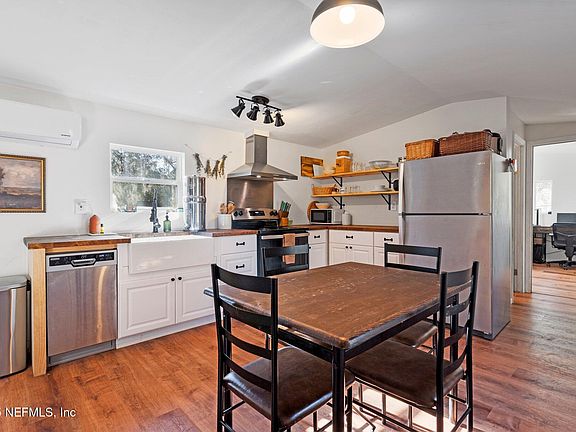 Welcome to this beautifully remodeled 2004 single-wide mobile home situated on a sprawling 1.34-acre lot in Green Cove Springs. Offering a perfect blend of modern updates & country charm, this property is ideal for those seeking peace & privacy while still being close to town. The home features a thoughtful split bedroom layout, providing privacy & comfort. The gorgeous kitchen is a true standout, showcasing butcherblock countertops, a modern design, & an efficient use of space, making it perfect for preparing meals & entertaining guests. Enjoy the outdoors with a large covered porch, perfect for relaxing or hosting gatherings. The mostly fenced yard provides ample space for activities & gardening, & the raised flower beds are ready for your green thumb. For those with a passion for raising animals, the yard is also fenced for chickens, making it a perfect little homestead. With a carport for convenient parking & two sheds for extra storage, there is plenty of space. for all your outdoor tools, equipment, and hobbies. Located in a desirable area of Green Cove Springs, this home provides the tranquility of rural living with easy access to nearby amenities, parks, & schools. Don't miss your chance to own this delightful property. Schedule a tour today and make this your peaceful retreat!