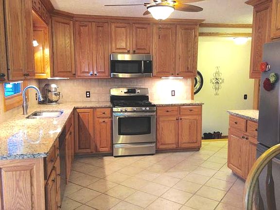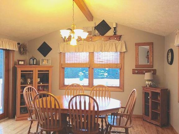 OPEN HOUSE!! 04/29/17 NOON TO 3!! This is the home you have been waiting for. Five lovingly maintained acres with your own mini apple orchard and perennials galore. An animal barn with water and a 30 x 50 heated pole barn with an office area. Both outbuildings have newer metal roofs. The cozy and comfortable ranch home has been updated throughout with hand crafted Amish cabinets,molding, trim, storage benches, built ins and flooring. The large modernized kitchen has granite counter tops, ceramic flooring, under cabinet lighting, oak cabinets with pull out shelves and complete with appliances. The spacious dining room has many windows, hardwood flooring, cathedral ceiling and a sliding glass door to the deck. The large living room will host big gatherings but is cozy enough for two. An awesome storage filled entryway, three bedrooms and one and a half bath complete the entry level. The finished walkout has a family room and a bonus room. You choose, heat with wood,gas or both