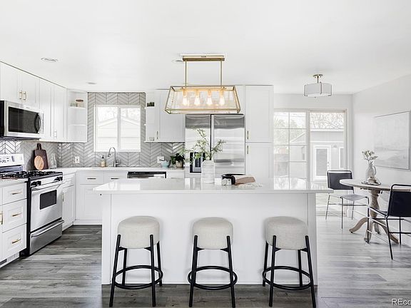 This thoughtfully updated 2 bed, 1 bath home lives like a 3-bedroom, thanks to a fully finished backyard studio with heating and cooling—ideal for a home office, gym, or creative retreat. Inside, the kitchen shines with sleek quartz countertops, a functional island with bar seating, and a modern layout that flows beautifully. The front yard is professionally landscaped with mature perennials, while a charming covered porch welcomes you home. Out back, a spacious deck offers the perfect setup for relaxing or entertaining. A one-car detached garage, front carport, and driveway provide plenty of parking and flexibility—use the garage as a workshop or gear shed if desired. Centrally located with quick access to I-70 and I-25, and just minutes from the shops, restaurants, and energy of Sunnyside.