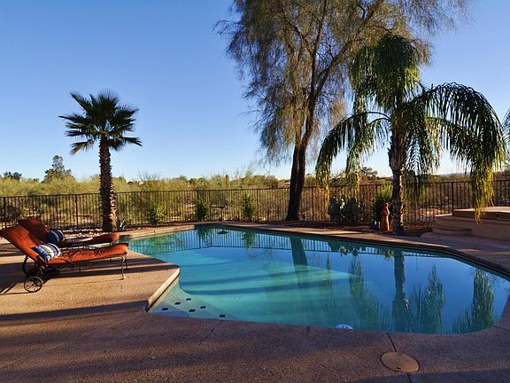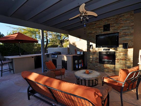 Enchanting Las Lomitas residence brings the outdoors in! Gated & located on a small hill overlooking a wash, just as its translation indicates! Pool-side privacy! Resort-quality back yard outdoor kitchen & seating bar where you can relax, wear a bikini, & entertain in complete privacy. There's fabulous light indoors & mountain views from nearly every updated, Low-E window! You'll love the owner's BR bay window & custom closet! The owner's bath is a work of art! Frameless glass shower for 2! Easy care, durability & style define this home. Chiseled edge granite counters, extensive maple cabinetry, stainless appliances, 1/2 in thick, Rojo-style concrete flooring & custom wood floors throughout. Recent high efficiency HVAC. And, a garage w/sealed floors, tool storage, & workbench!